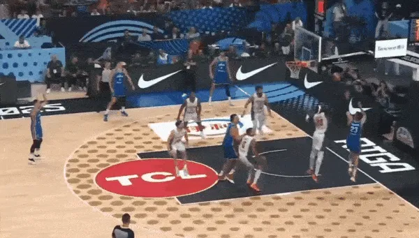 比赛的第三节,约基奇篮下一抢四,二次进攻上篮完成得分。